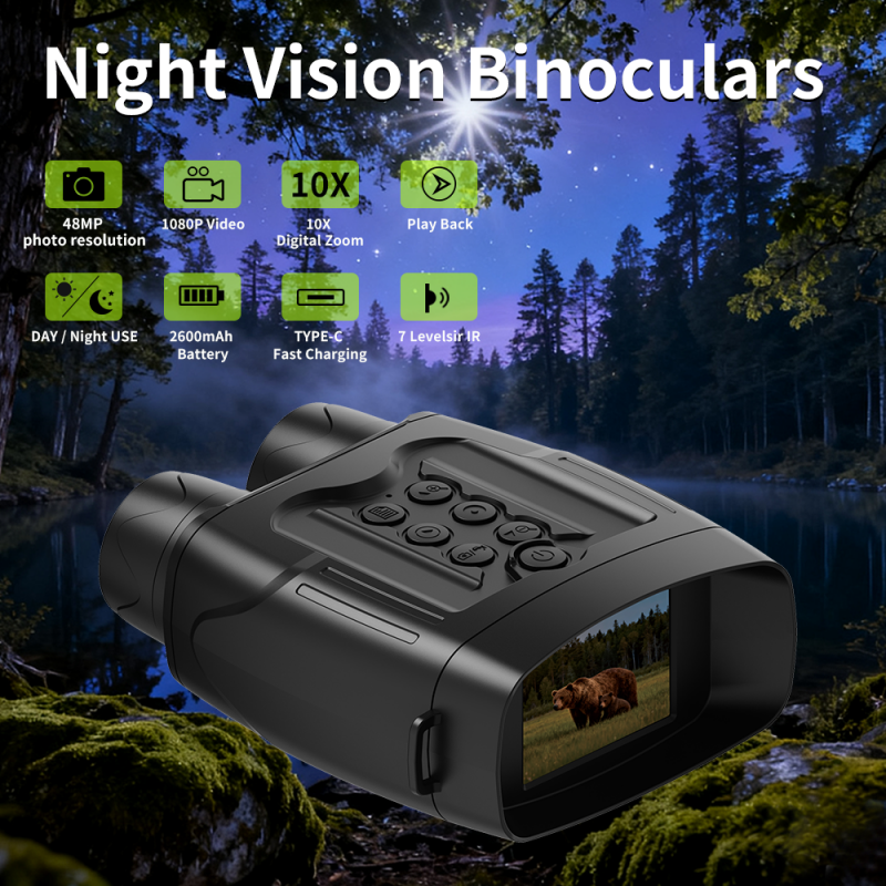 The NTK30 1080P Night Vision Binoculars offer an excellent entry point for anyone looking to explore night vision technology without breaking the bank. With high-definition 1080P video recording and 48MP photo resolution, the NTK30 provides solid performance for casual wildlife observation, hunting, and security surveillance, all while maintaining a user-friendly design and affordable price tag.