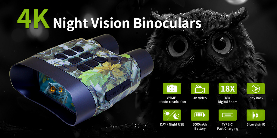The NTK40 is a powerful and versatile night vision binocular designed for outdoor enthusiasts, hunters, and security professionals who demand top-tier performance in any lighting condition. Offering high-resolution 4K UHD video recording and 85MP photos, the NTK40 ensures you never miss a detail, whether it's during the day or in complete darkness. Equipped with advanced infrared technology and a built-in tactical flashlight, this night vision binocular is perfect for surveillance, wildlife observation, and hunting, even in the most challenging environments.